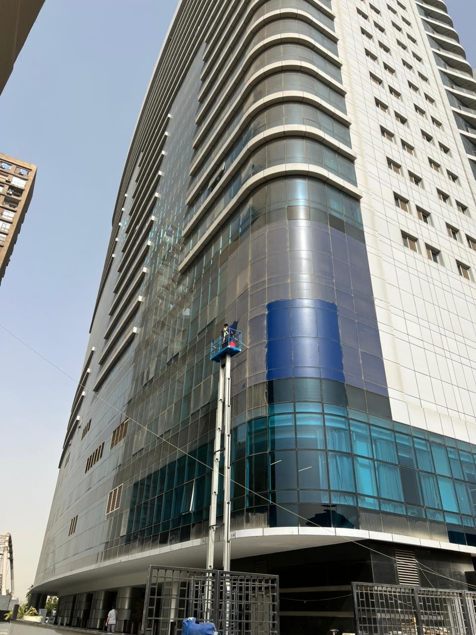 تنظيف احترافي لجميع أنواع الواجهات مهما كان ارتفاعها أو نوعها.